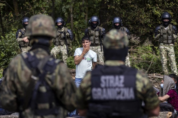 Zajmując „twarde” stanowisko w sprawie imigracji, premier Mateusz Morawiecki nie zawahał się „podziękować Komisji Europejskiej za działania ograniczające nielegalną imigrację” podczas sierpniowego kryzysu. Tutaj grupa afgańskich imigrantów utknęła między białoruską i polską granicą w Osnars Górnym 20 sierpnia 2021 r.