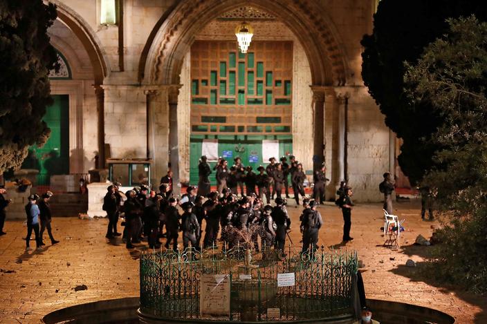 We wschodniej JerozolimieDoszło także do starć między palestyńskimi demonstrantami a izraelską policją w dzielnicy Sheikh Jarrah, która w ostatnich dniach była świadkiem protestów przeciwko możliwej eksmisji rodzin palestyńskich na rzecz izraelskich osadników. Na dziedzińcu meczetu doszło do starć między wierzącymi Palestyńczykami a izraelskimi policjantami strzegącymi wejść do tego trzeciego świętego miejsca islamu.