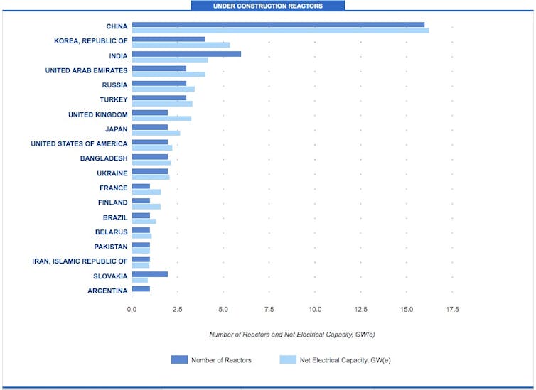 W krajach nienależących do OECD Chiny i Rosja prowadzą rozmowy z kilkoma krajami, które mogą być nowymi uczestnikami energetyki jądrowej. Oferują korzystne warunki finansowania i korzystają z informacji zwrotnych wynikających z doświadczeń z ciągłości ich krajowych programów budowy nowych reaktorów.